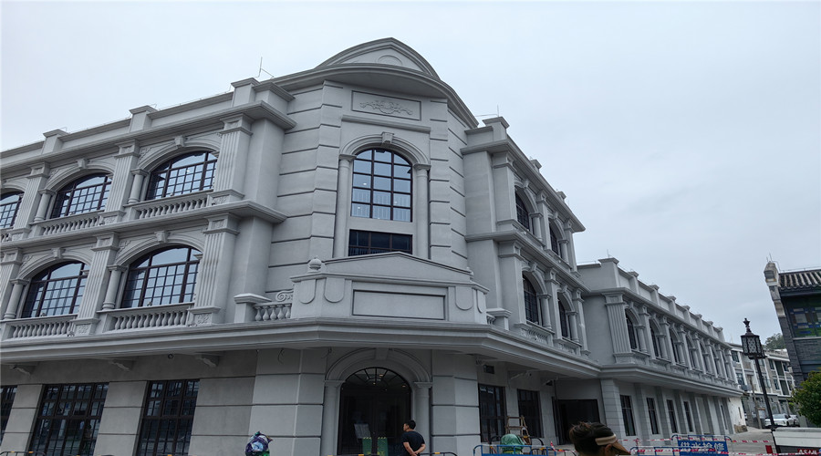 GRC構件是玻璃纖維增強水泥制品的簡稱,通俗的說就是水泥里加上玻璃纖維絲和鋼筋使用模具制作的預購件.GRC構件作為一種新型外墻裝飾材料具有總