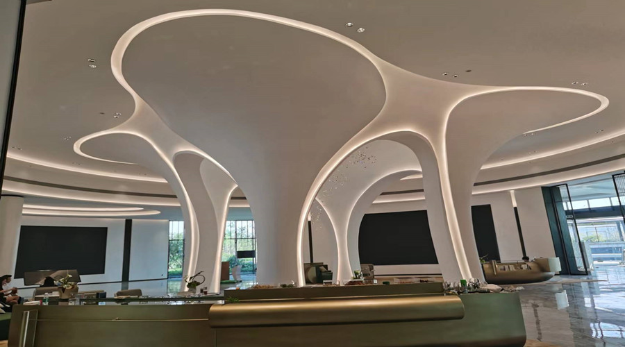 GRG材料打破了傳統材料強度不夠,裝飾效果不好看,成本高昂,施工困難等缺點,并且在建筑造型這一領域填補了建筑設計師們心中對于材料缺陷而不能實