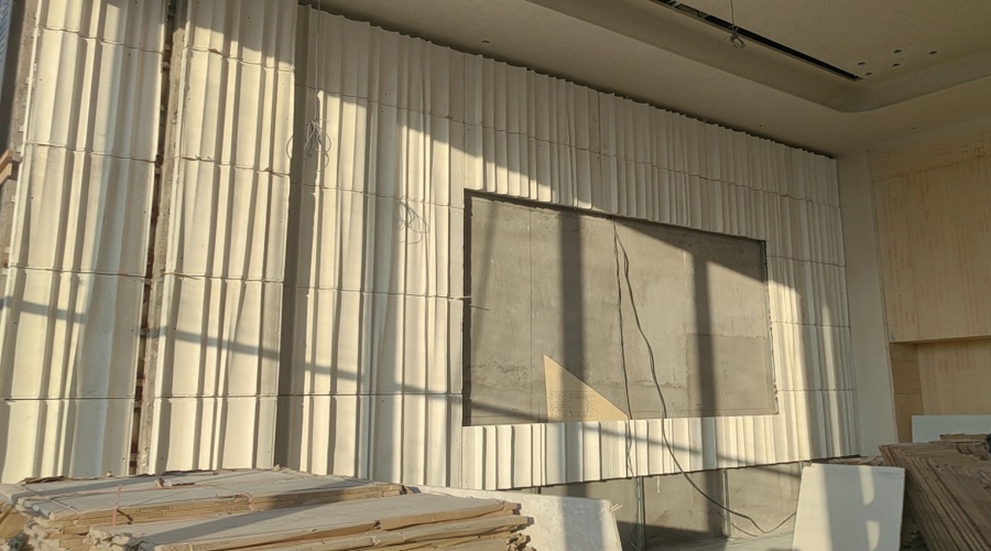 GRG材料防火性能通常能達到A1級,造型豐富,施工方便,損耗低―GRG材料全部工廠預制完成,不需現場二次加工,安裝采用預埋件吊裝施工便捷的優